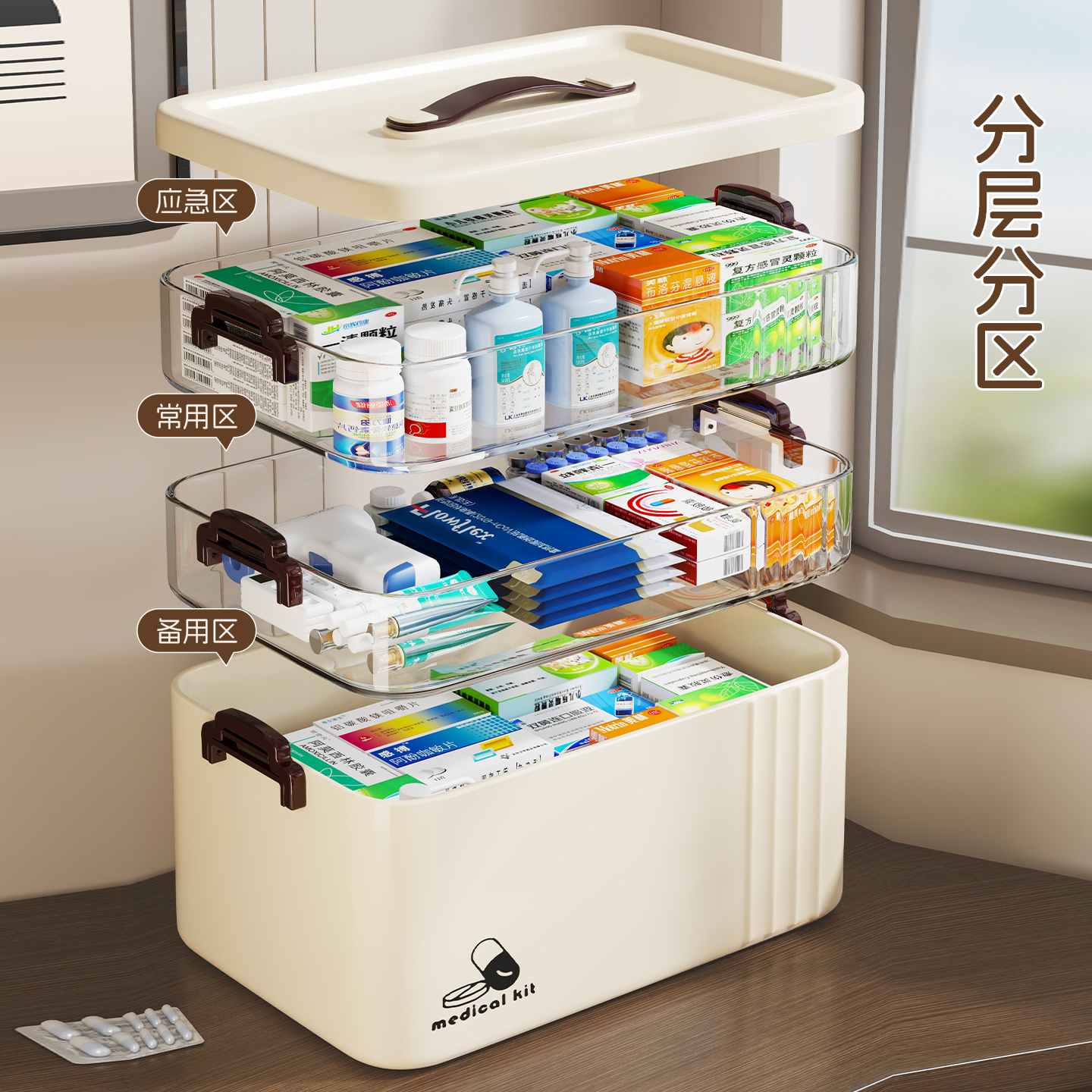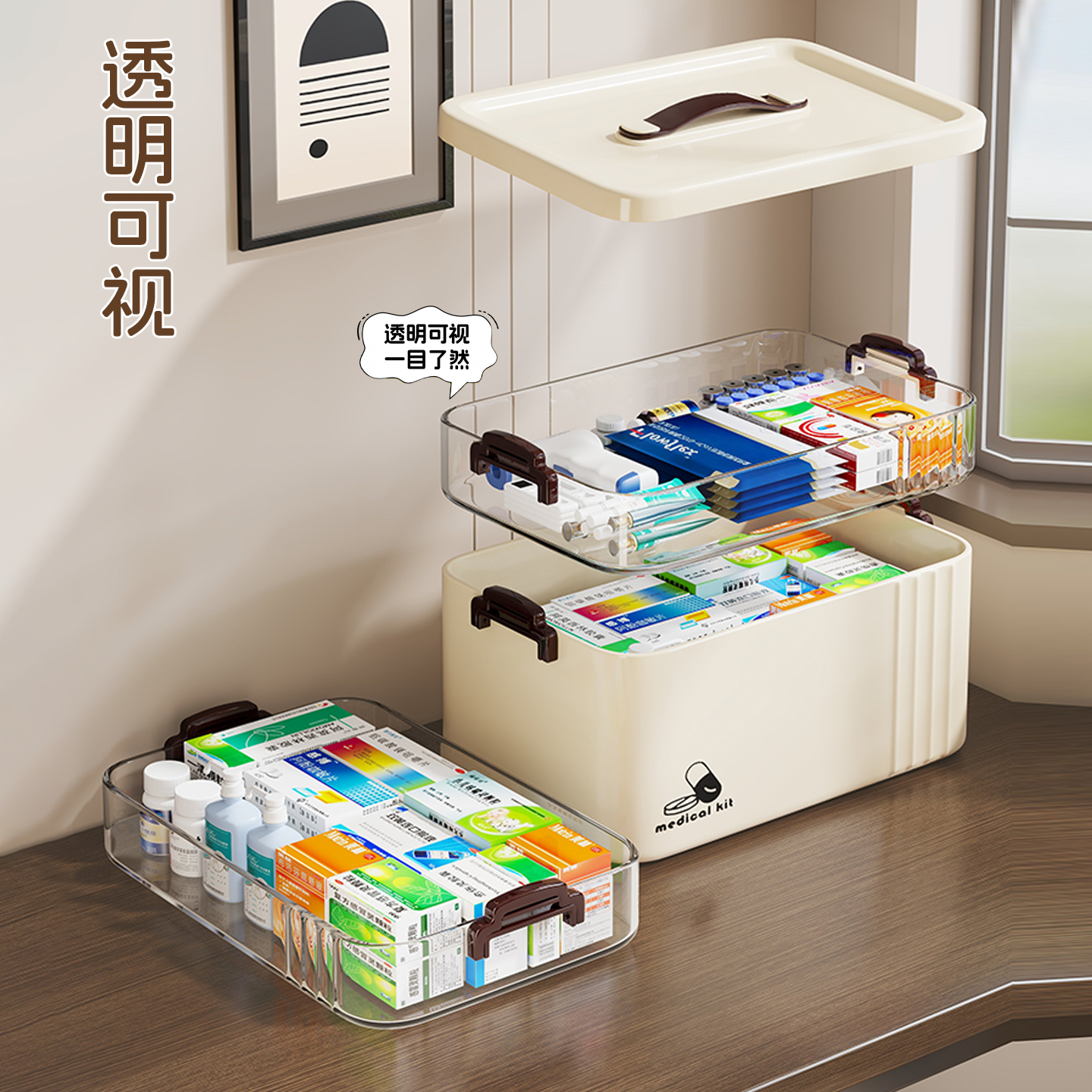 大容量家庭药箱多层分类药品收纳盒家用药物储物箱子医疗箱手提包