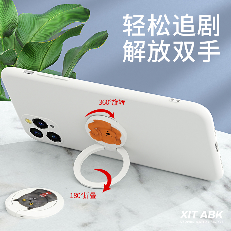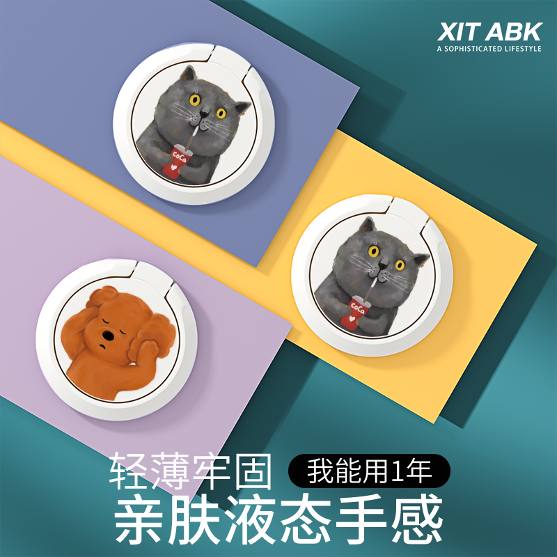 指环扣支架360°旋转卡通猫咪圆形金属圈粘贴式便携牢固防摔适用于手机壳背面支架创意小狗追剧多功能桌面架