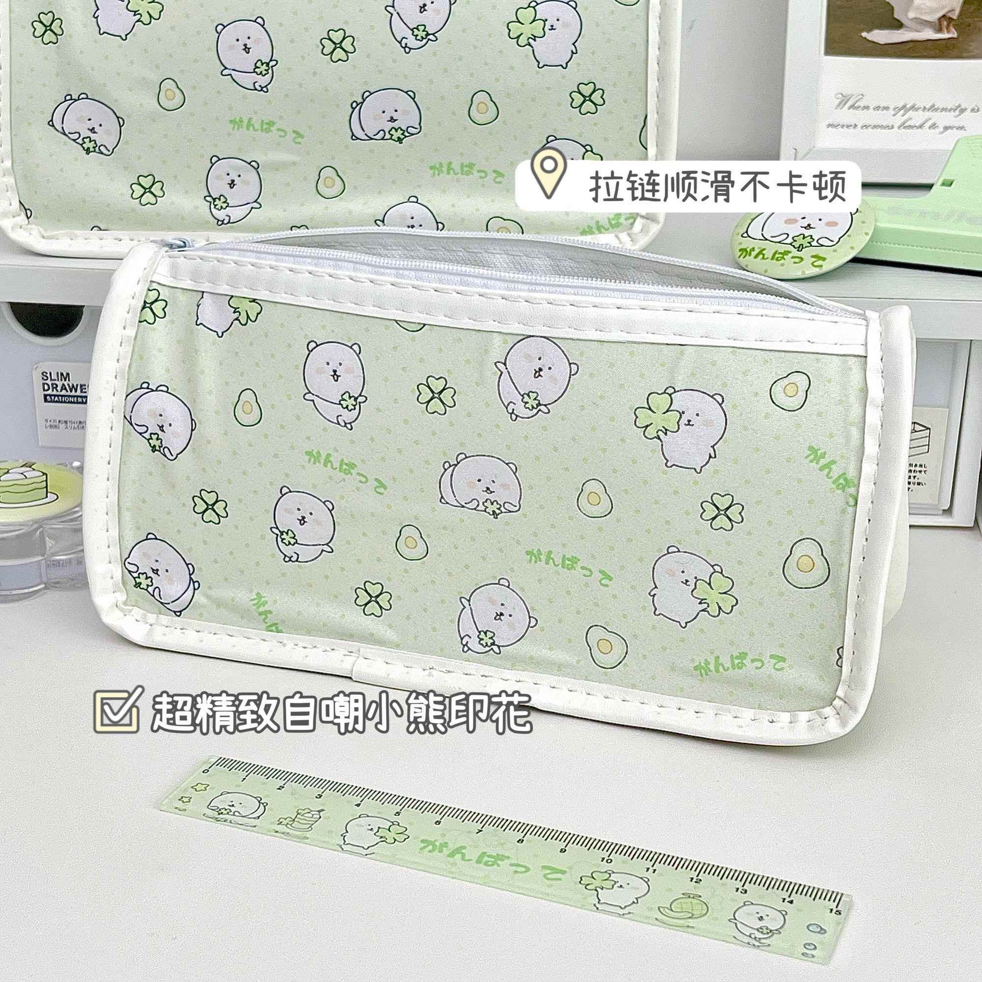 自嘲熊双层透明笔袋ins风可爱高颜值大容量防水pvc文具学生收纳袋