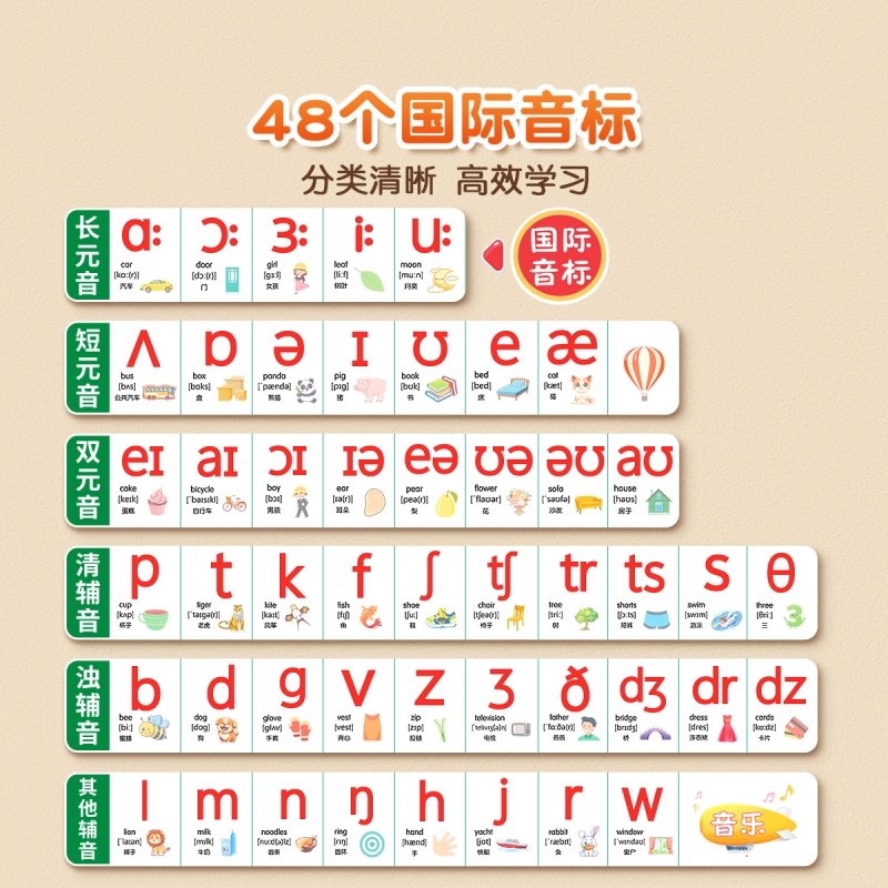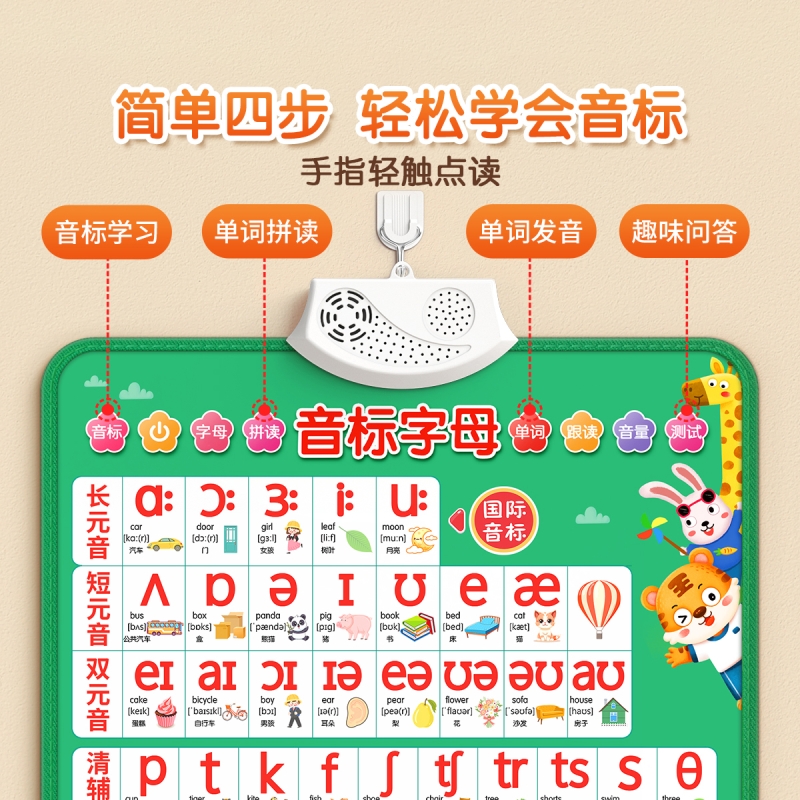 英语音标有声挂图发音自然拼读48个国际英文字母儿童点读发声早教