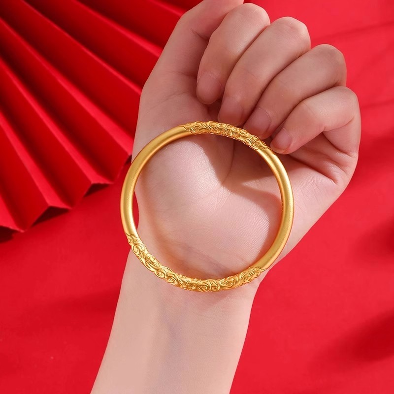 仿三金婚礼古法传承手镯女铜合金仿金叠戴两世欢手链首饰卷草纹