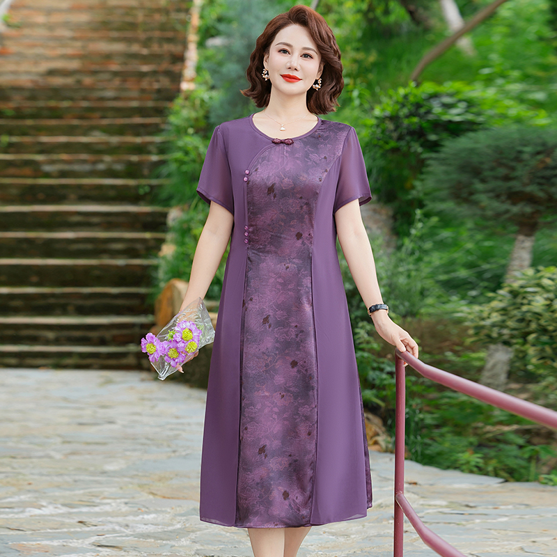 妈妈婚礼连衣裙中老年人夏季女装高端喜婆婆婚宴礼服裙子平时可穿