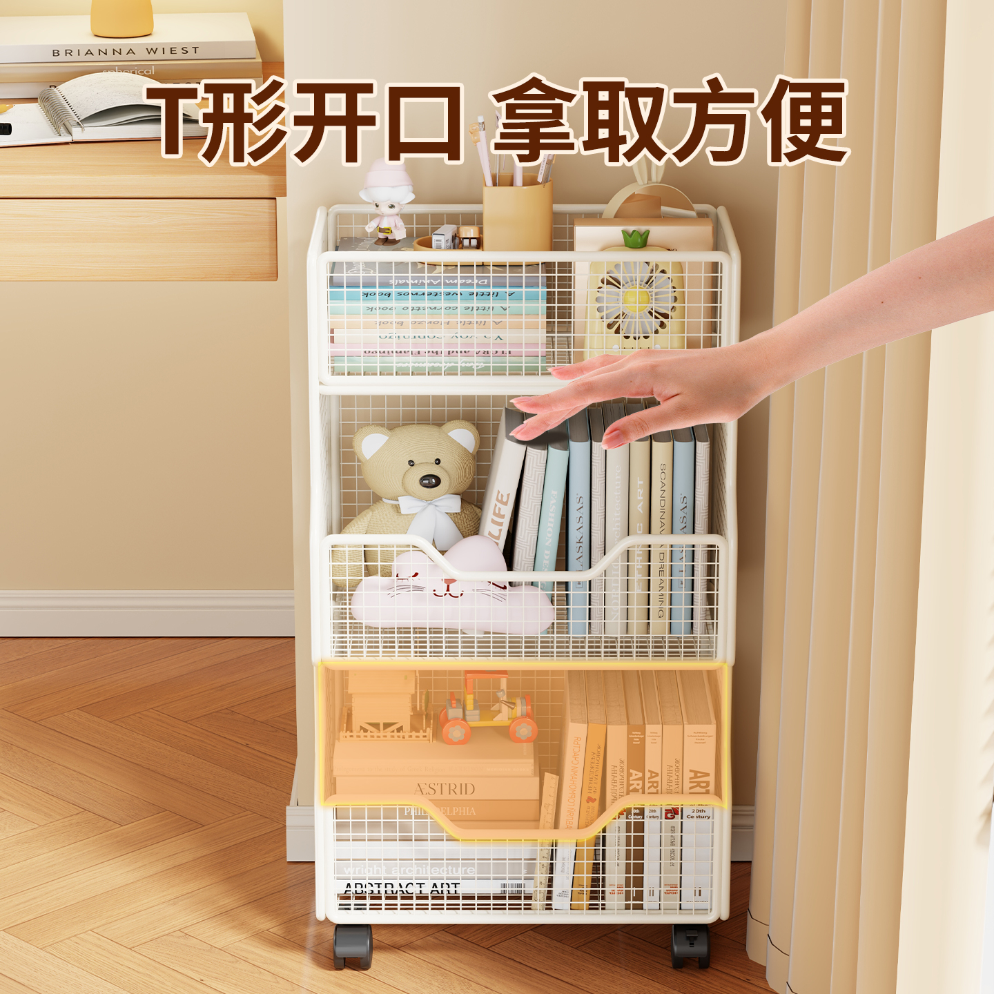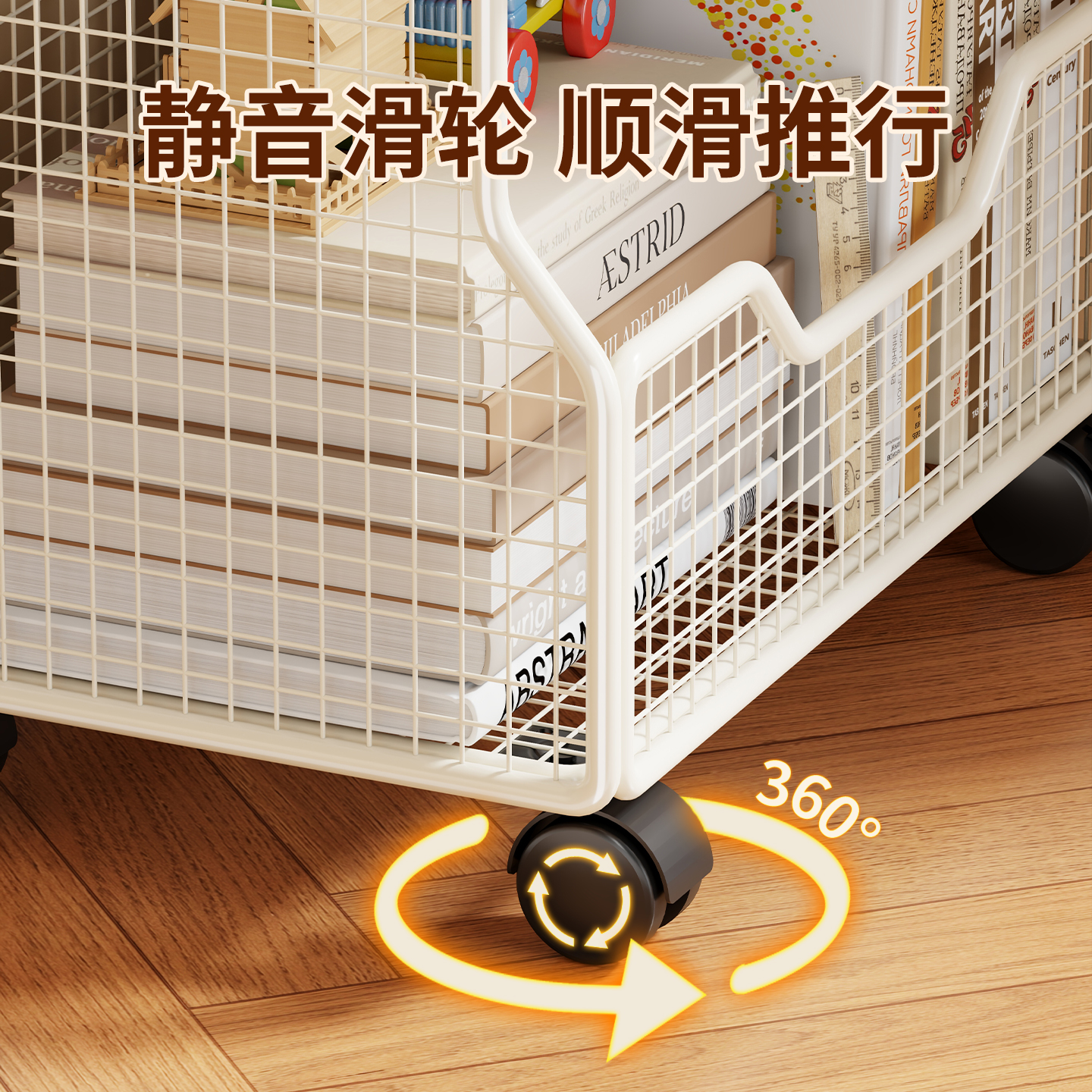 书本收纳置物架宿舍桌下书包收纳筐高中生放书的可移动小推车桌面整理神器文件架多层书架放置带轮铁艺滑轮
