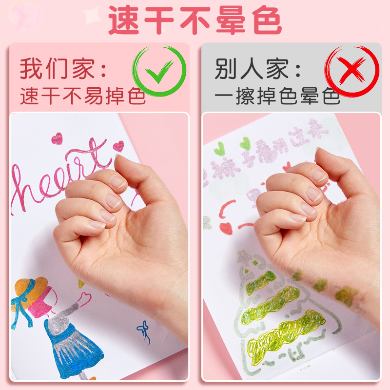 彩色闪光笔啫喱发光亮晶晶流沙银光变色做手账的手帐专用儿童莹光做笔记珠光标记闪亮金属轮廓闪粉水彩笔荧光