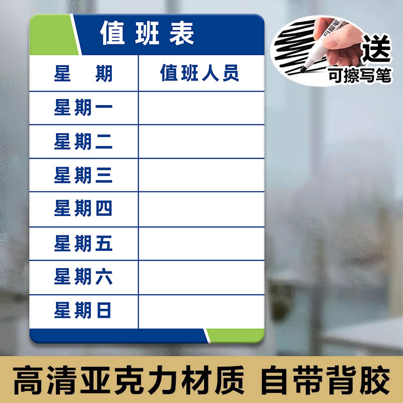 值班人员公示牌今日值班公告牌换轮班调岗本周值日安排表亚克力墙贴可擦写值班人员姓名公告栏告示栏定制