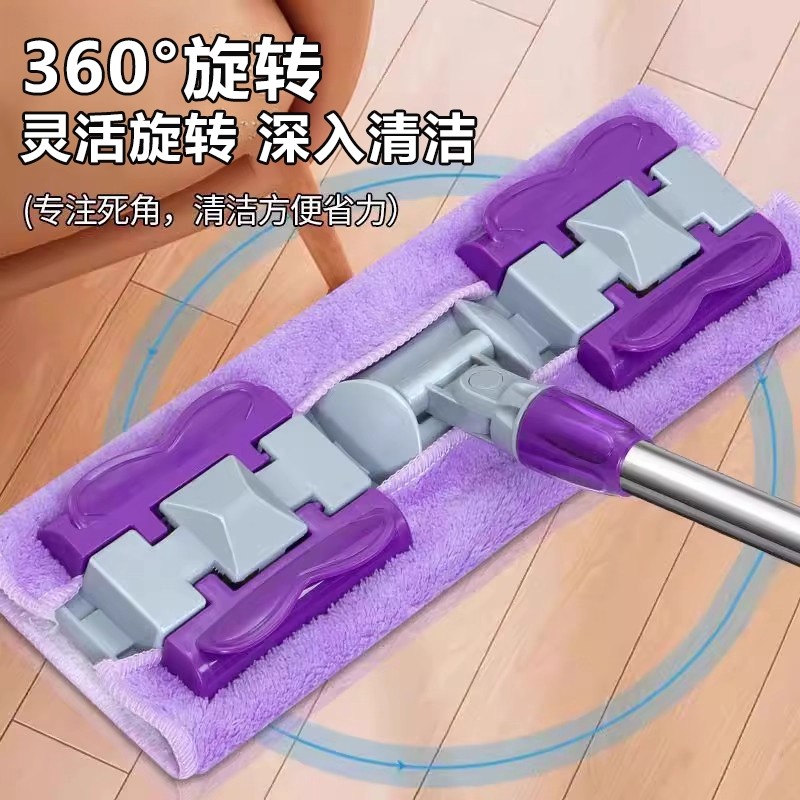 夹布平板拖把家用一拖即净干湿两用吸水毛巾拖布静电拖地除尘地板