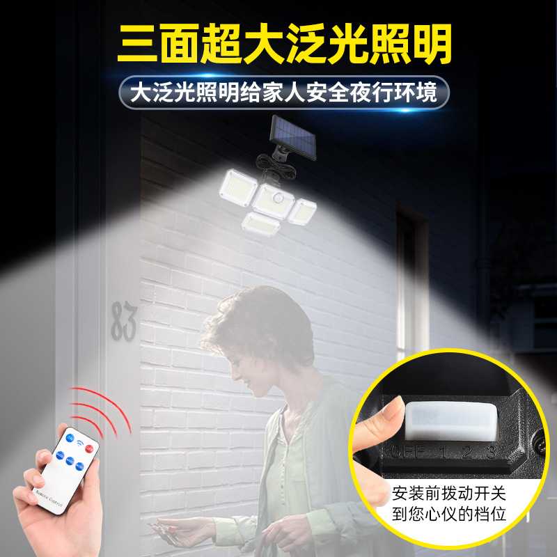 爆款户外太阳能路灯LED防水庭院灯人体感应分体车库照明庭院灯