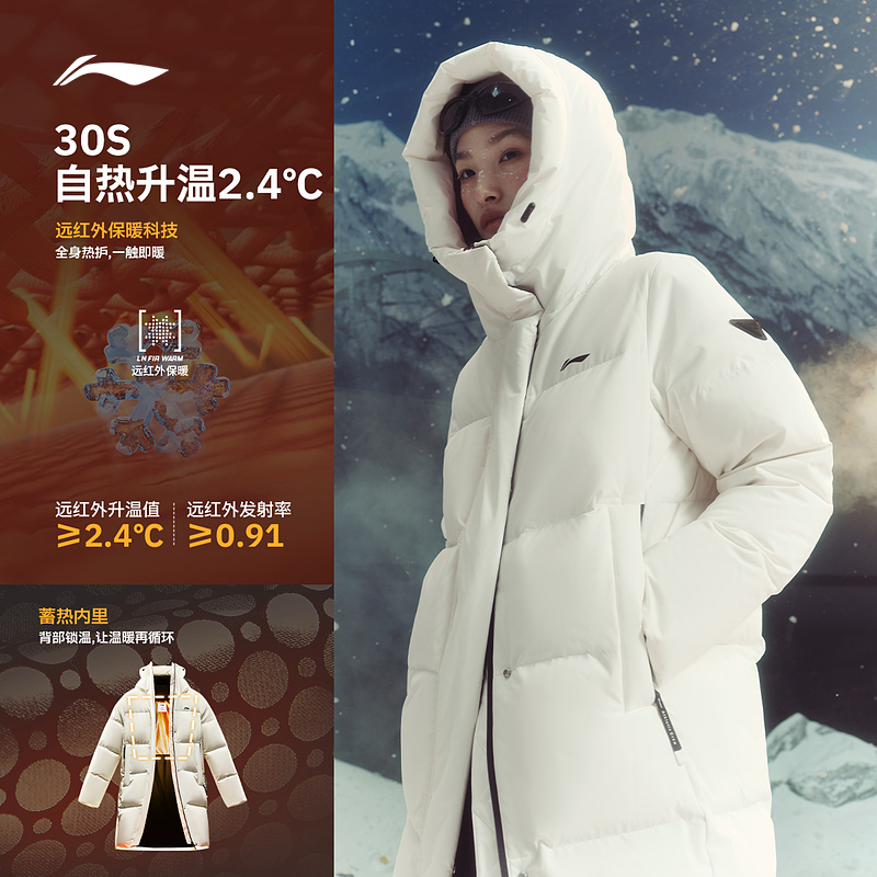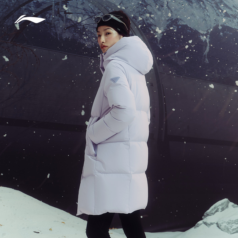 李宁火锅羽绒服 女子防风排湿防泼水保暖御寒宽松鸭绒中长羽绒服