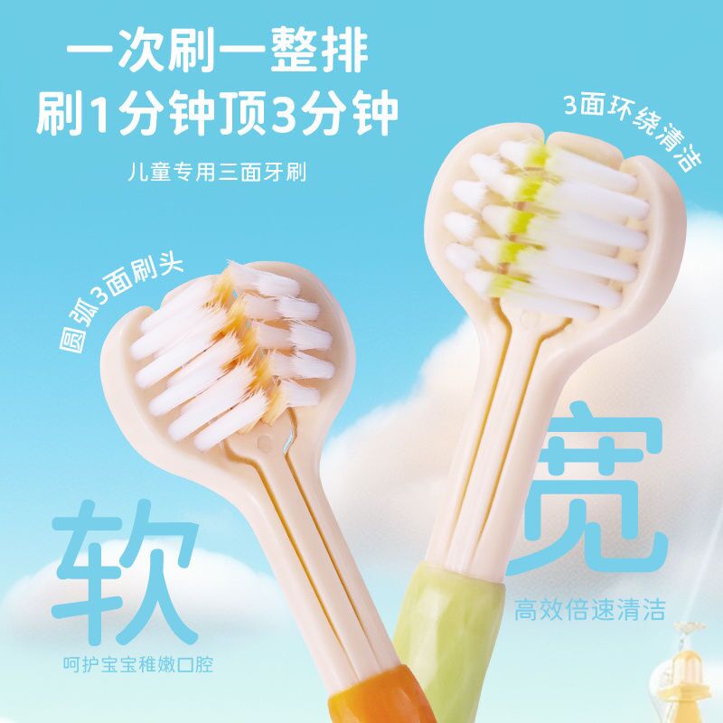 山姆同款多巴胺三面儿童牙刷3到15岁软毛u型小孩学生口腔清洁立体