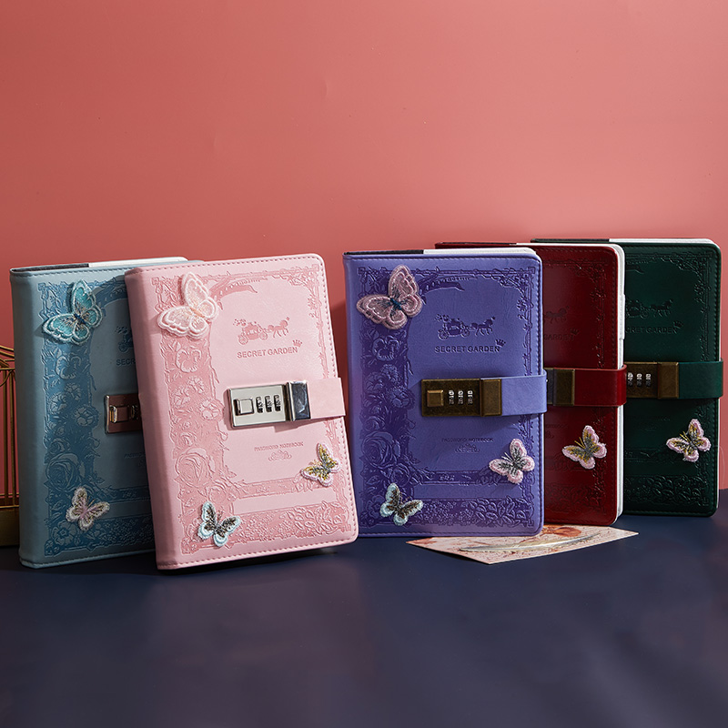 复古密码本带锁日记本创意十二星座内页手帐密码笔记本本子多功能记事本小学生网红文艺田字方字格文具儿童本
