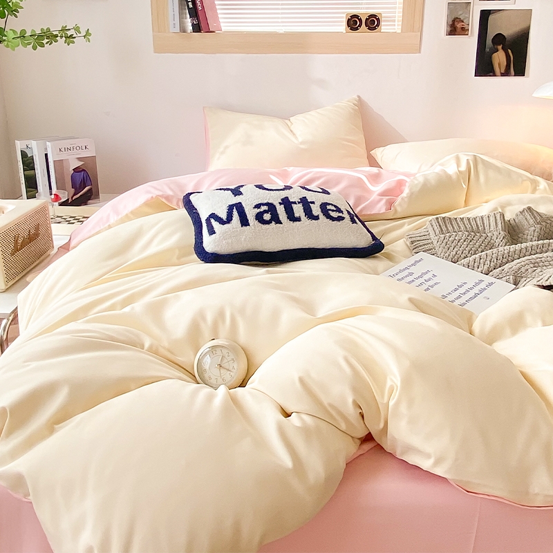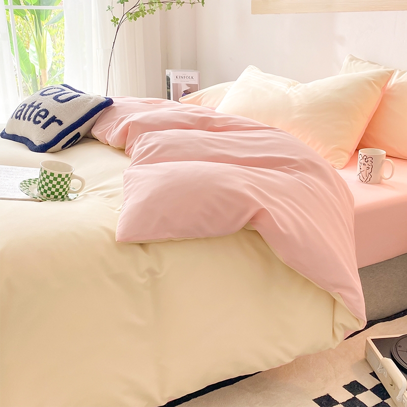 加厚水洗棉四件套奶油风被套床单宿舍床上三件套非全纯棉四季通用
