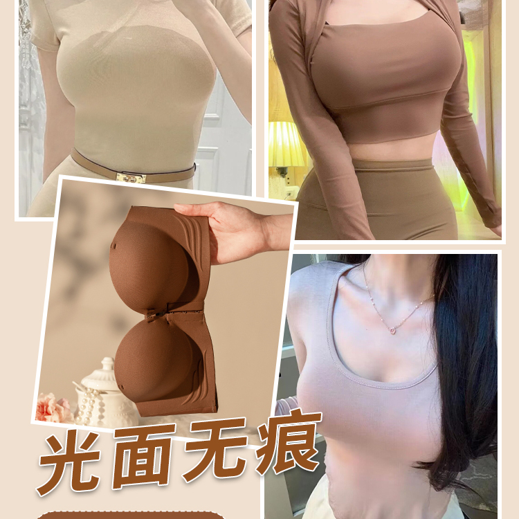 千奈美无痕内衣女薄款粉底液隐形大胸显小防下垂收副乳大码文胸罩