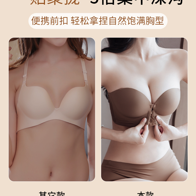 前扣无肩带内衣女加厚平胸小胸显大聚拢防滑露肩抹胸无痕隐形文胸