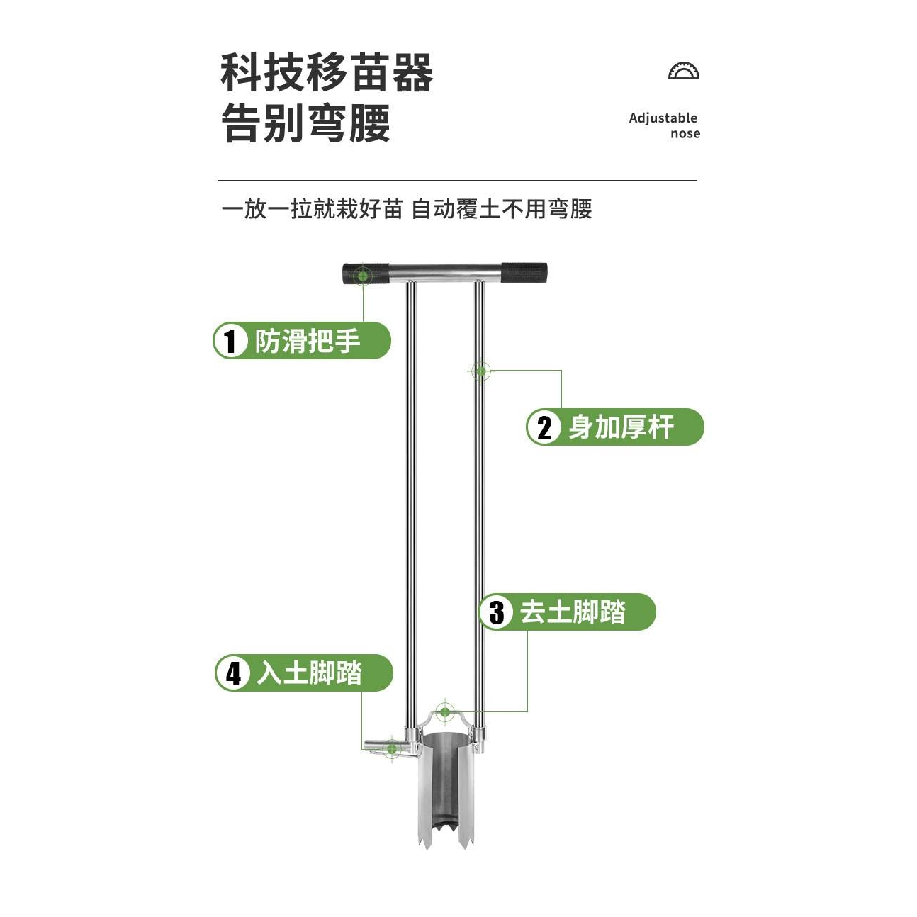 不锈钢移苗器多功能农用打孔取土移栽玉米西瓜草莓起苗取苗器