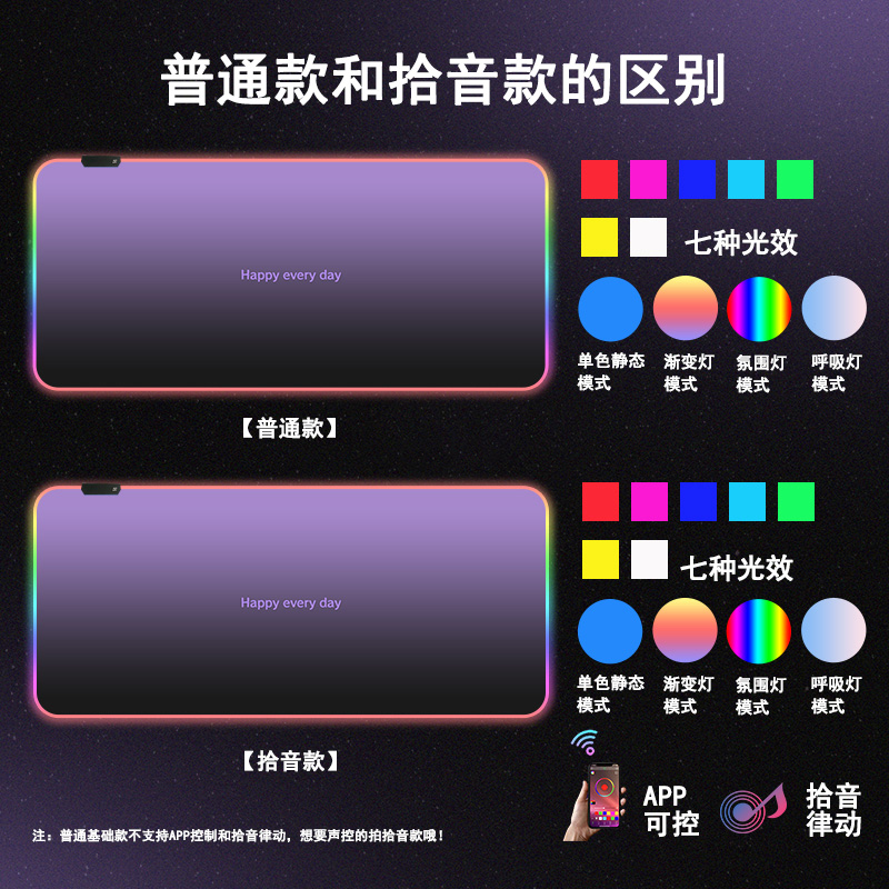 极简风渐变RGB发光鼠标垫高级感黑纯色电竞桌垫超大号游戏键盘垫