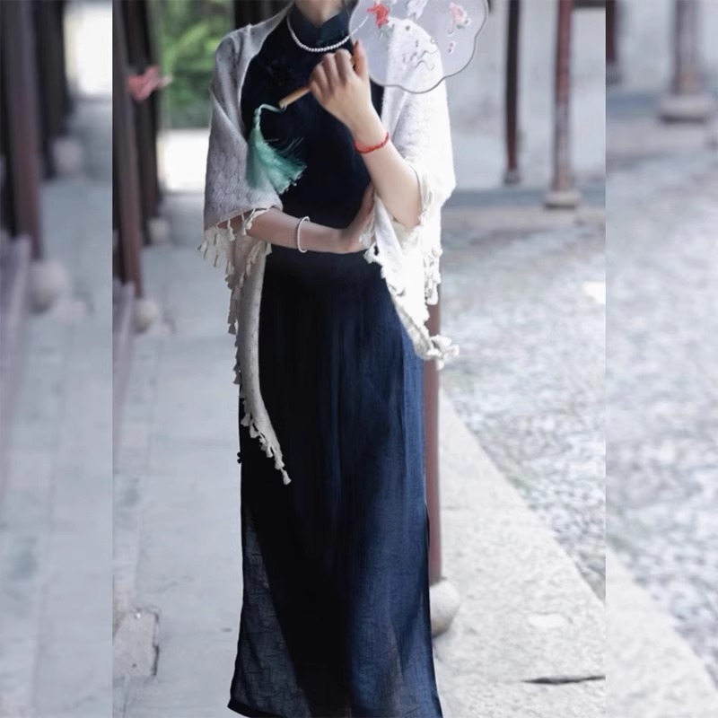旗袍披肩针织复古文艺夏季新款流苏外搭外套斗篷长袖开衫搭配旗袍