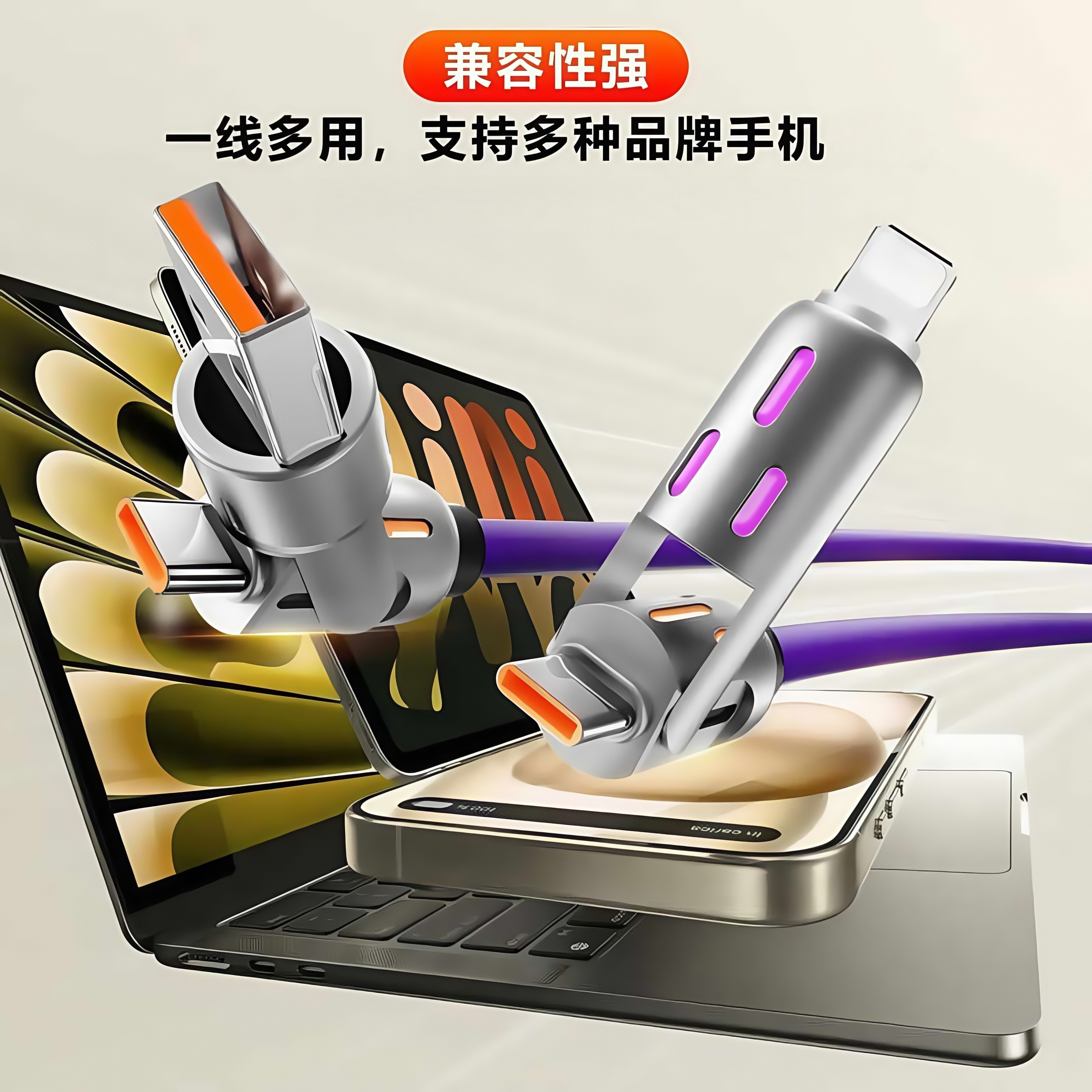 雷珞克240W快充光柱四合一新品七彩呼吸灯数据线适用苹果适用华为typec闪电快充多功能充电器线充电线