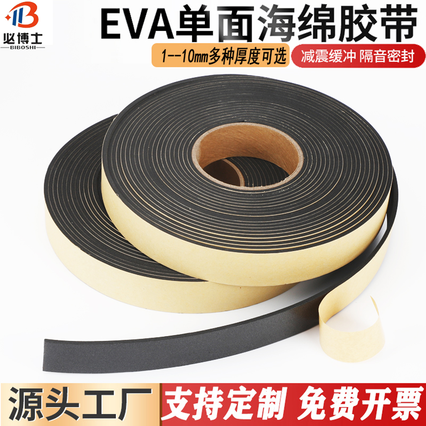 必博士eva泡棉单面胶黑色高密度减震棉防震防撞止震垫隔音缝隙填充泡沫条防尘防水海绵密封胶条背胶海绵胶带