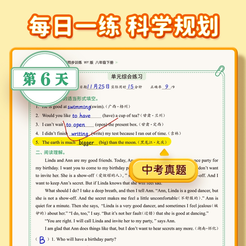 【易蓓直营】初中英语外研版译林版人教版背记清单每日一练单词短语语法七八九年级中考阅读理解同步课堂笔记知识清单作业练习1