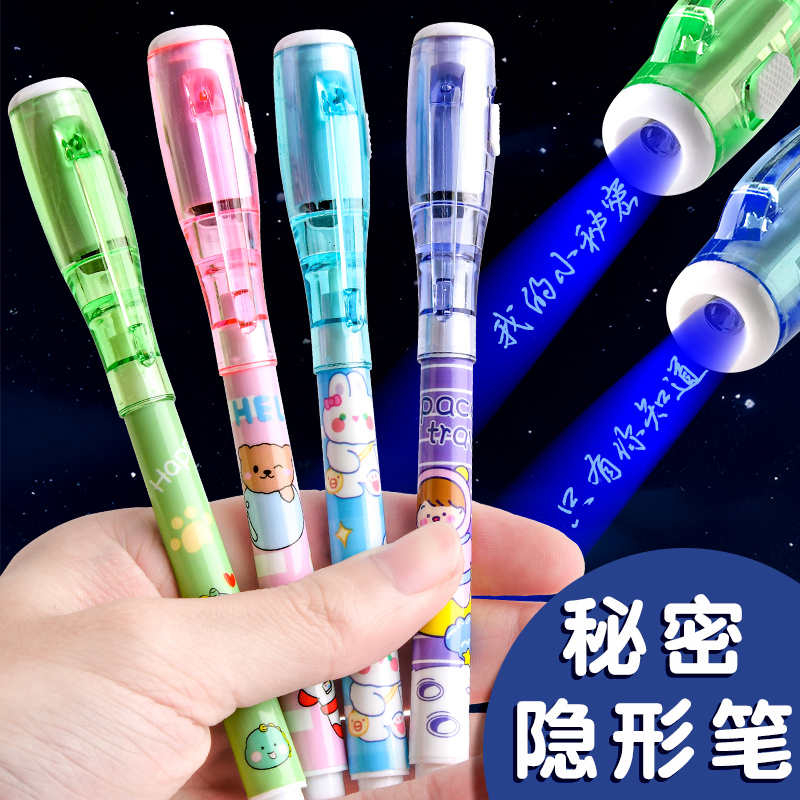 隐形灯照笔中性笔消失笔隐形荧光笔魔术记号笔灯笔药水笔夜光创意卡通双头紫外线圆珠笔网红秘密写字会发光笔
