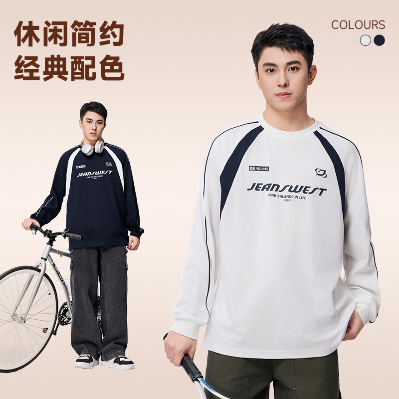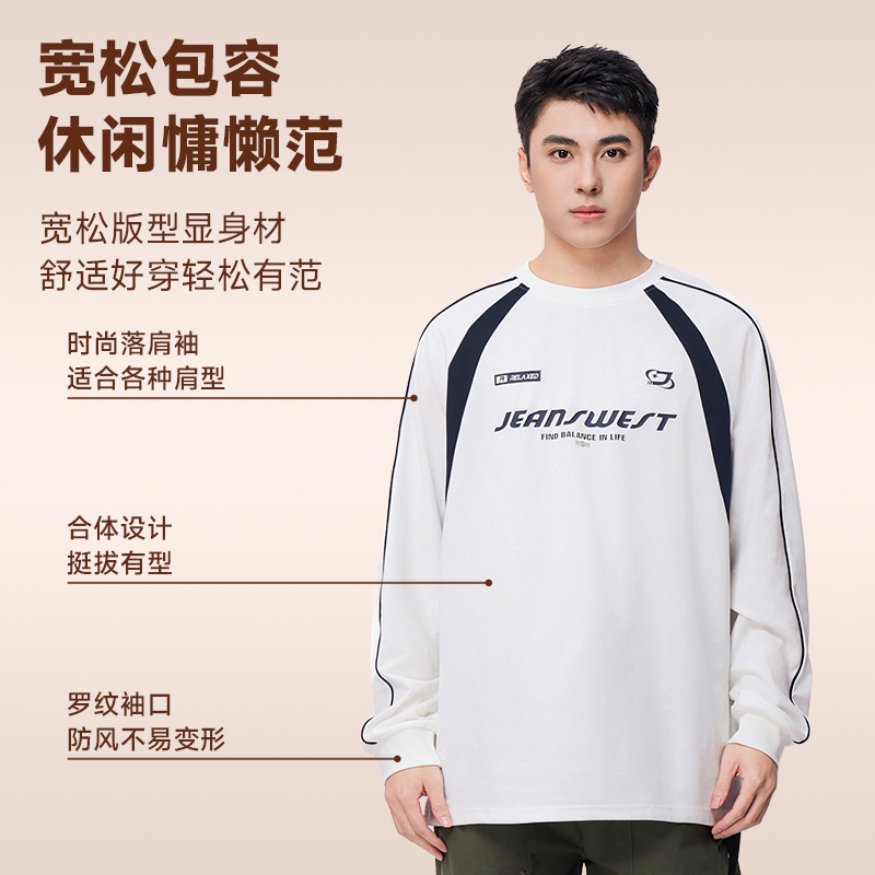 【商场同款】真维斯男装2025春新款轻风圆领宽松休闲长袖上衣