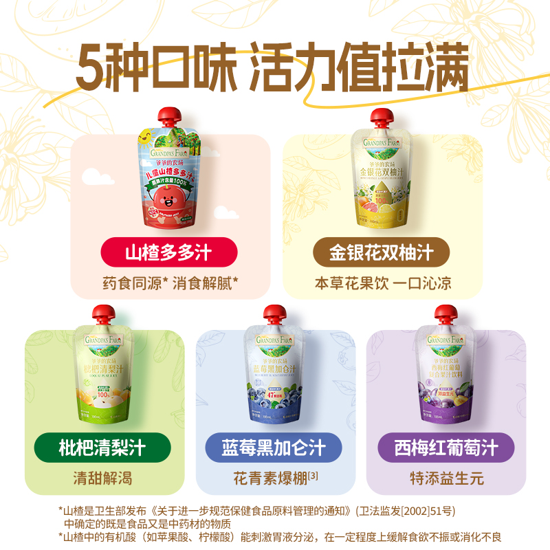 爷爷的农场儿童金银花柚子汁饮料100%果汁饮品无添加色素儿童零食