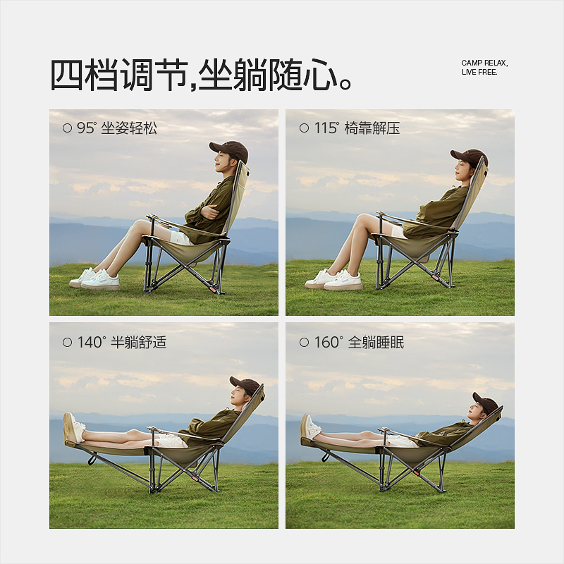 户外折叠椅加高月亮椅可调节露营椅子便携式躺椅沙滩钓鱼野餐椅凳