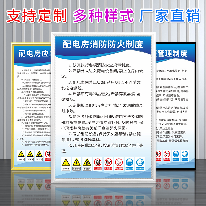 高低压配电房安全管理制度牌套装配电室应急处理预案消防火操作规程巡查检查值班标识提示广告牌贴纸KT板定制