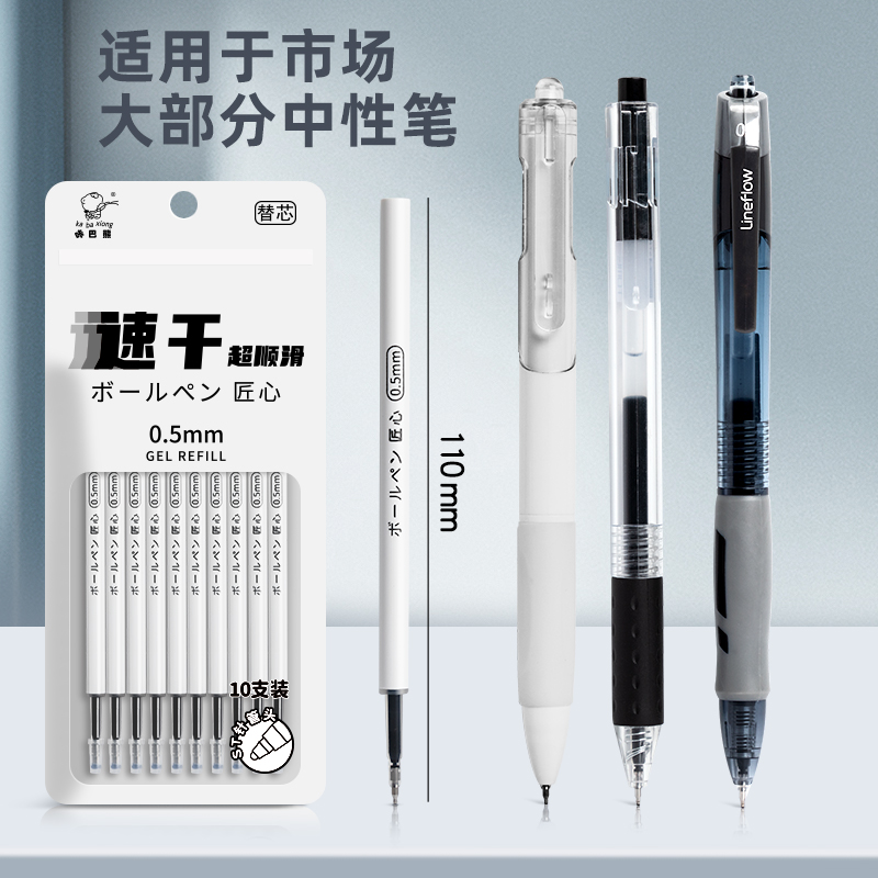 咔巴熊ST头按动笔芯大容量速干中性笔黑色0.5按动按压式葫芦头针管头刷题笔专用替芯批发学生圆珠笔蓝色红色