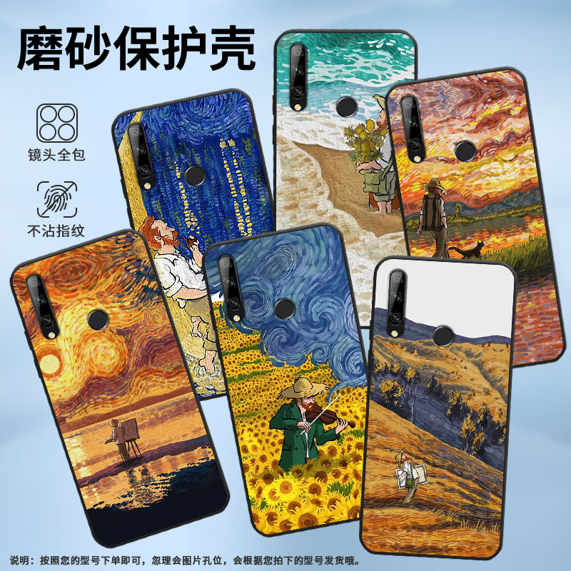 适用荣耀9C俄罗斯版手机壳Play3保护壳全包边荣耀Play3后指纹版磨砂壳honor9C梵高油画星空月亮硅胶时尚