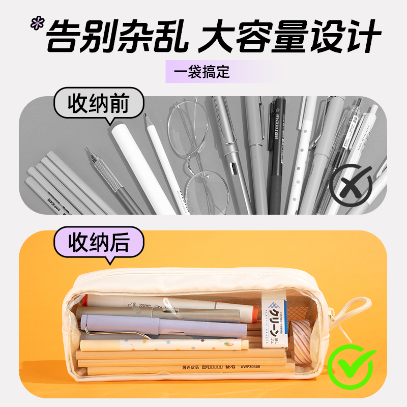 晨光透明笔袋高颜值ins风女孩款女生2025新款大容量文具盒小学生初中高中生用儿童铅笔盒简约痛包多功能便携