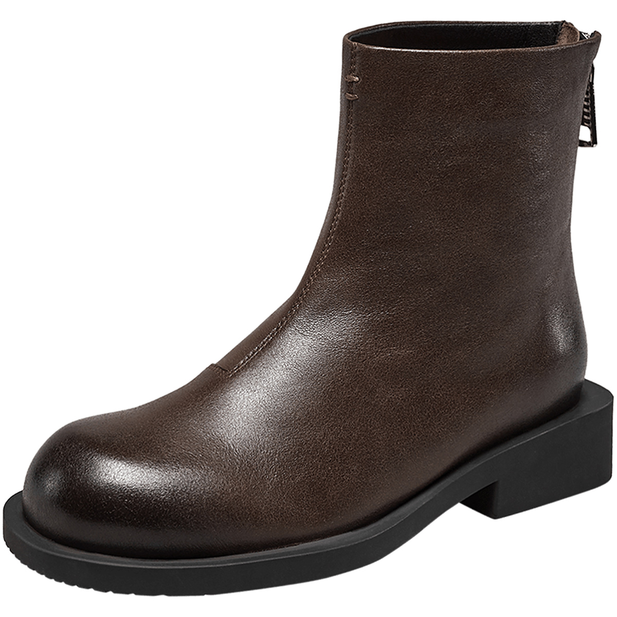 真皮~美拉德内增高短靴女秋2025新款复古马丁靴西部牛仔靴堆堆靴