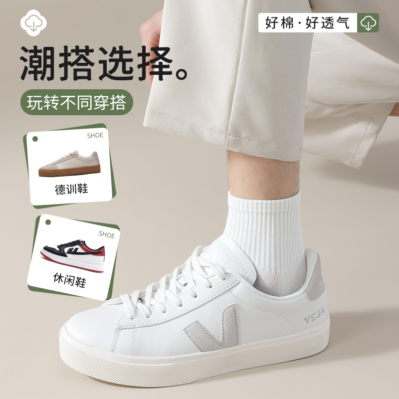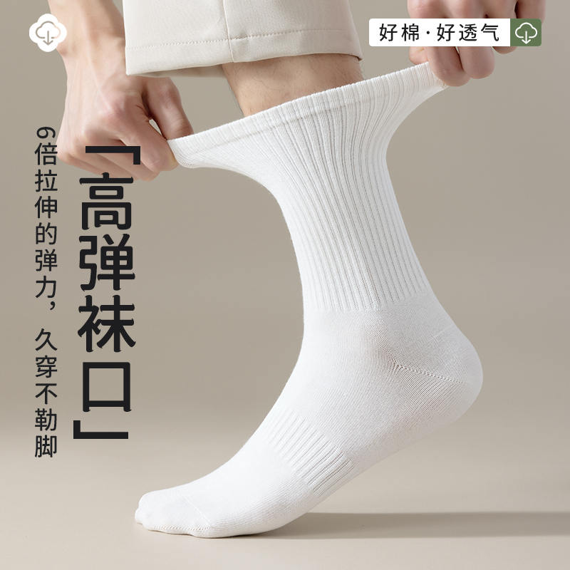 袜子男款男士中筒袜春秋季纯棉白色棉袜运动长袜长筒精梳棉防臭