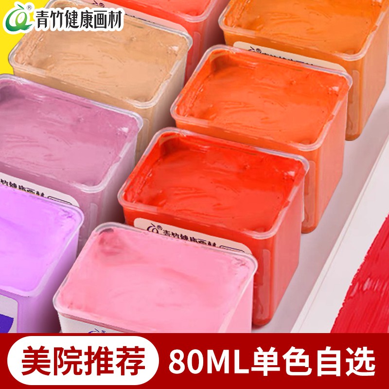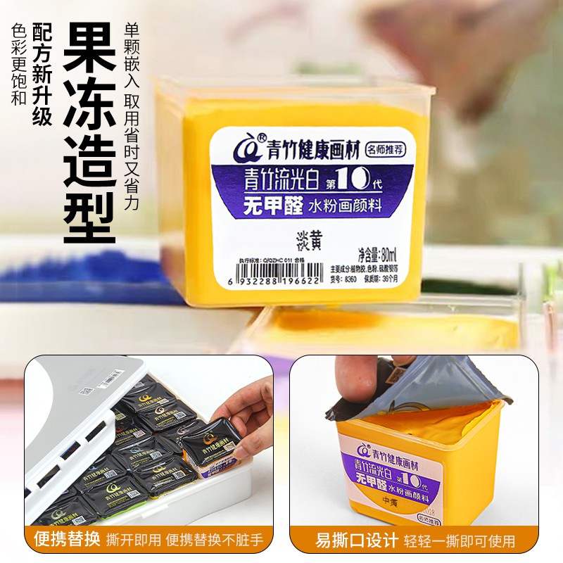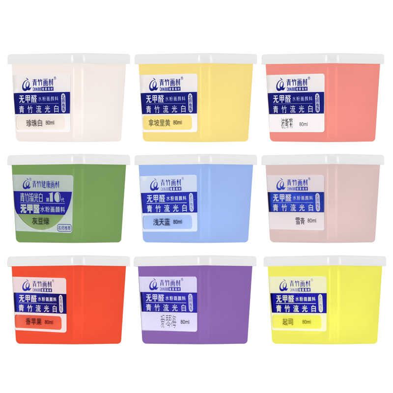 青竹画材水粉颜料单个艺考集训水粉画学生42色果冻套装补充装替换装美术生初学者绘画颜料80ml流光白