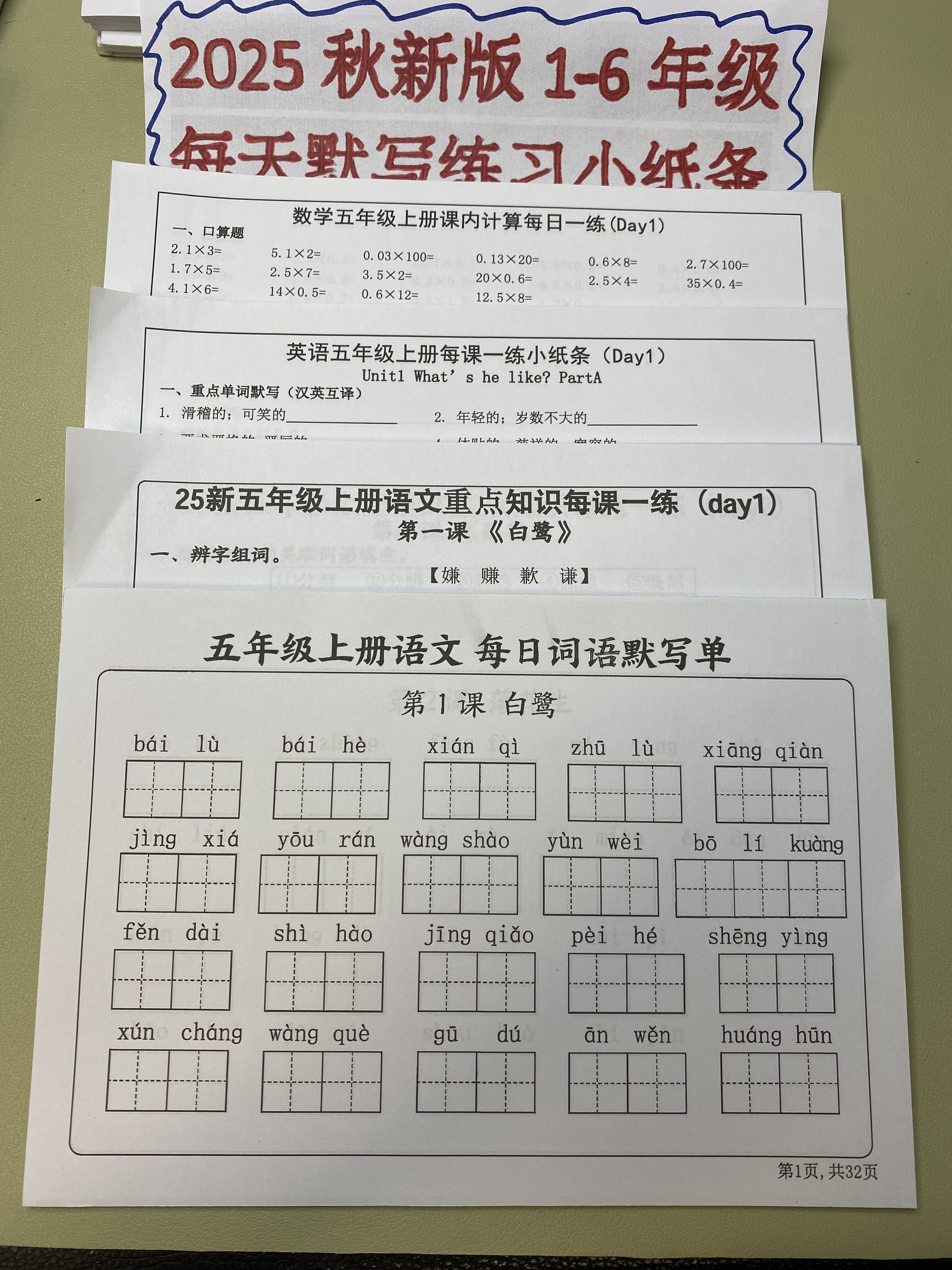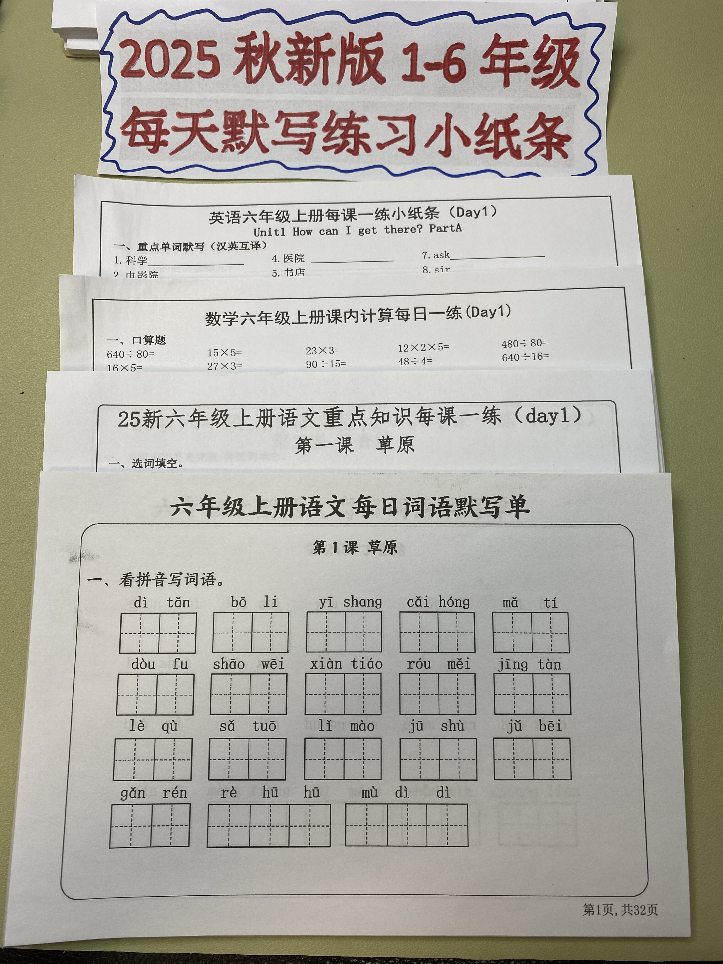 2025新版小学语文一二三四五六年级上册每日词语默写单看拼音写词