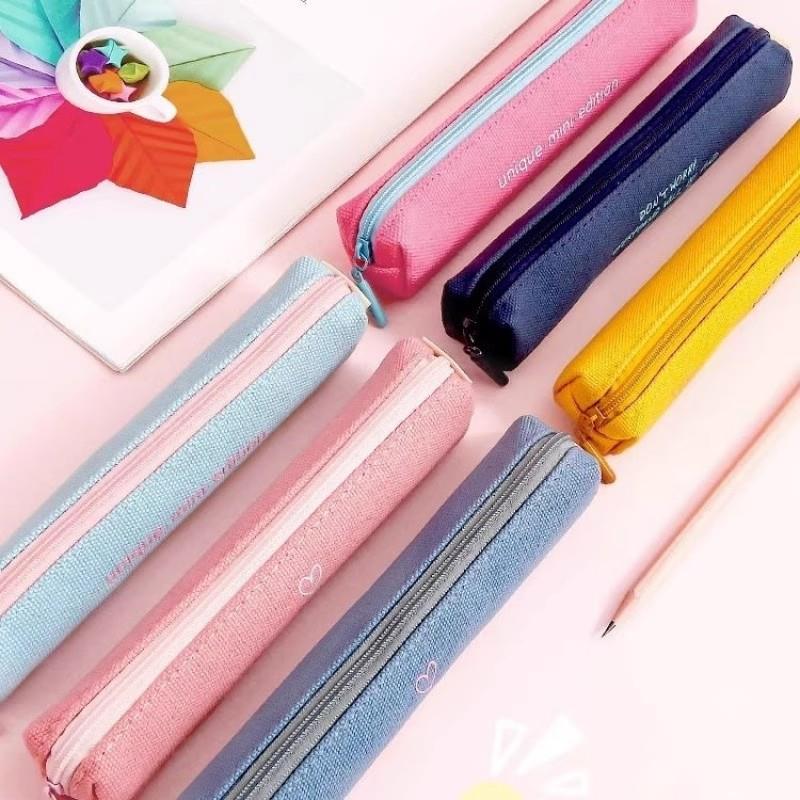 小容量笔袋小学生初中生女孩简约文具铅笔盒小巧帆布笔袋多功能帆布牛仔布铅笔盒男女通用小清新笔袋小容量