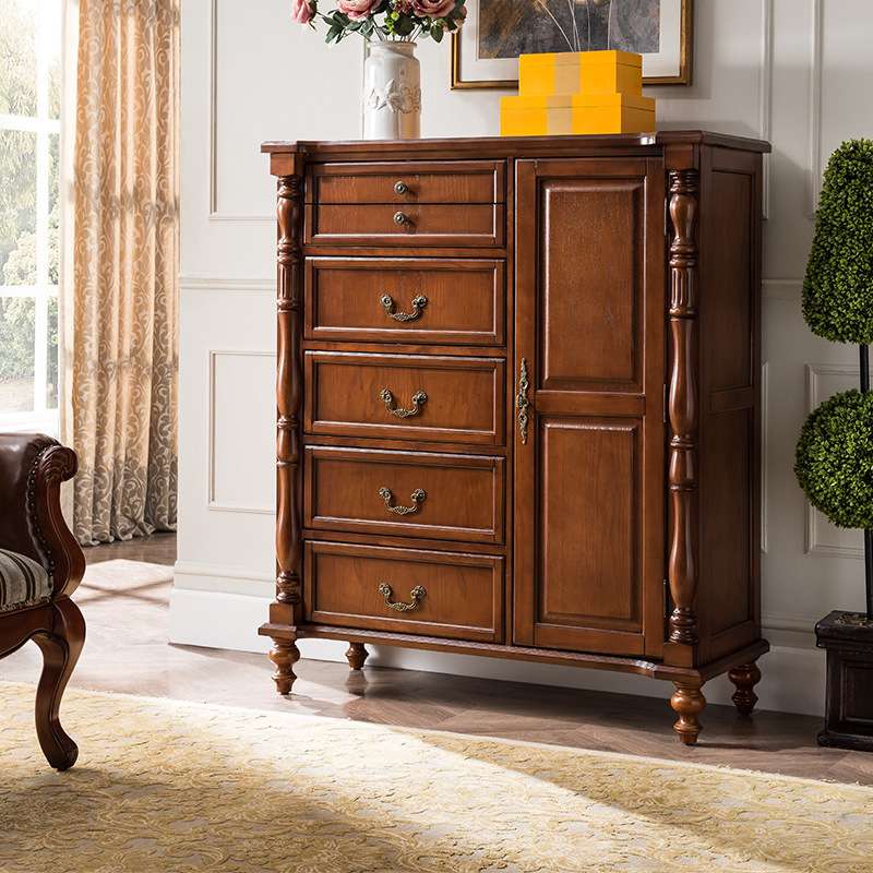 美式实木六斗柜储物柜入户门厅玄关收纳架欧式简约抽屉式置物靠墙