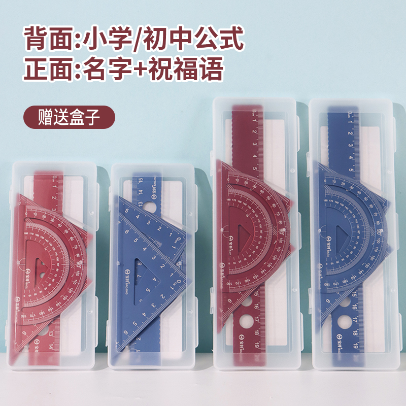 热销定制尺子刻名字小中学生文具四件套装高颜值刻字钢尺礼物