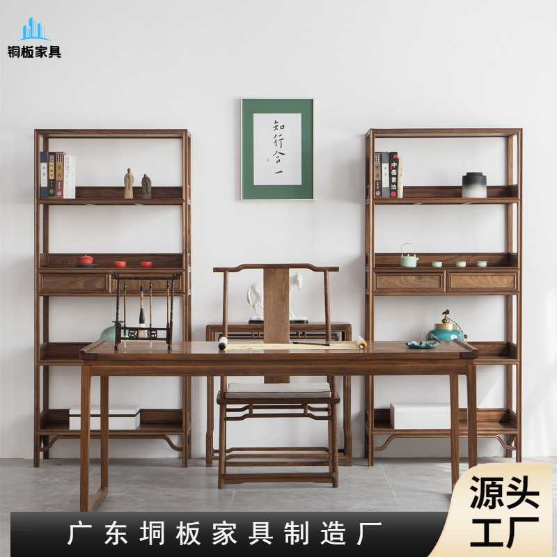 定制书房书桌书柜组合全实木画案书画桌榆木茶桌办公桌新中式跨境
