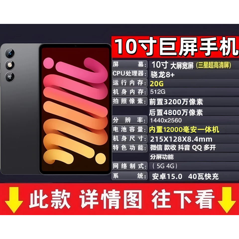 10寸大屏幕智能手 机12000毫安大电池超长待机全面屏5G全网通超薄