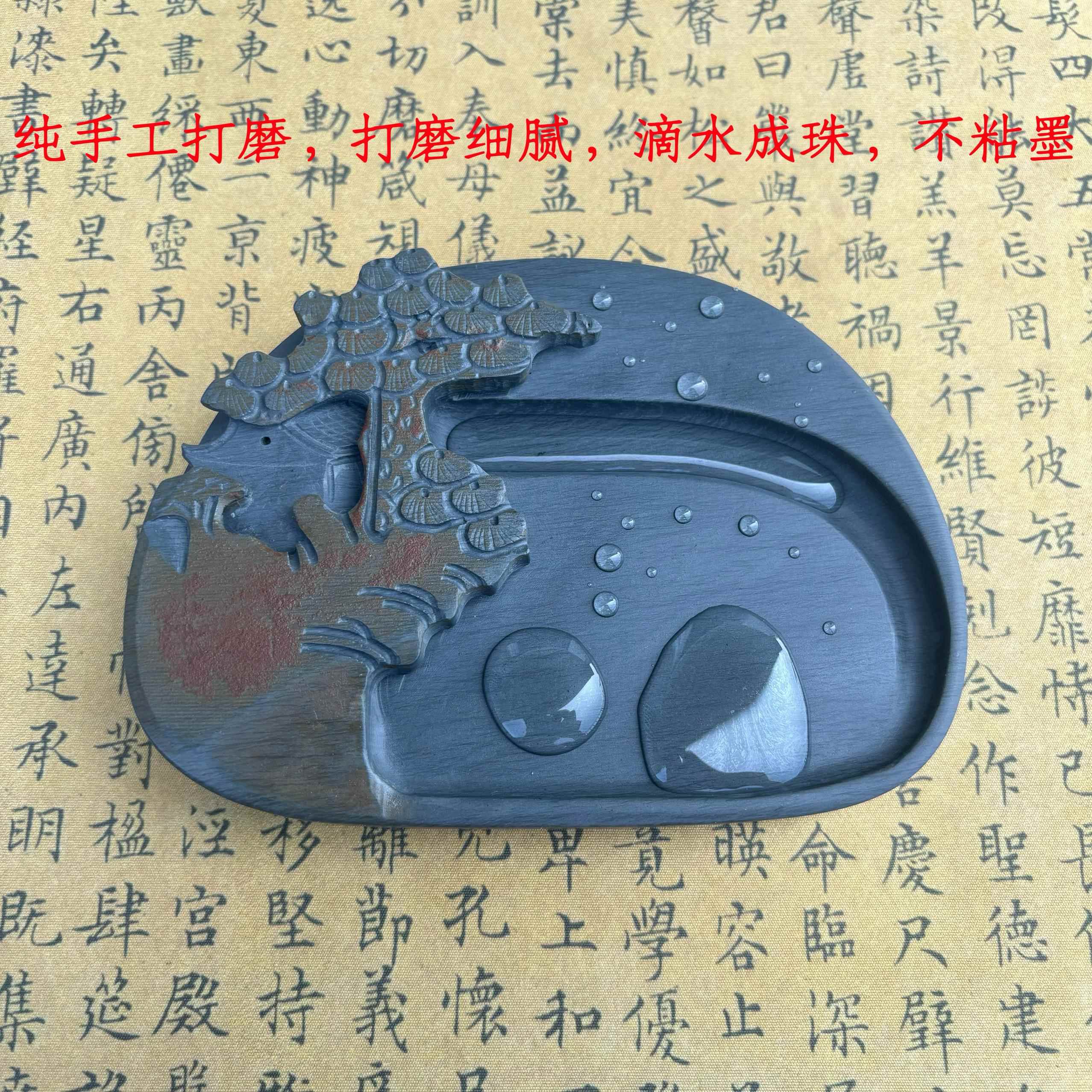 天然原石砚迎客松歙砚台水波纹砚专业级毛笔书法文房磨墨不粘墨砚