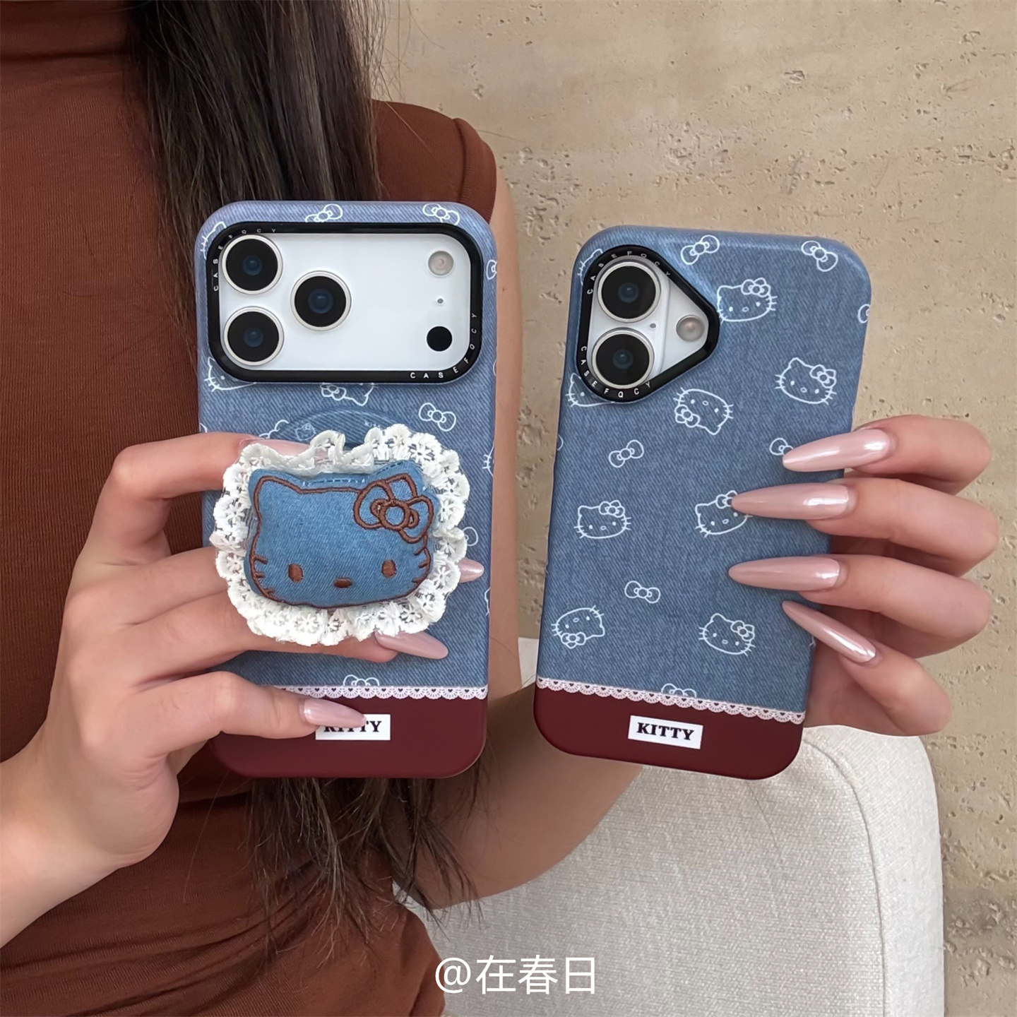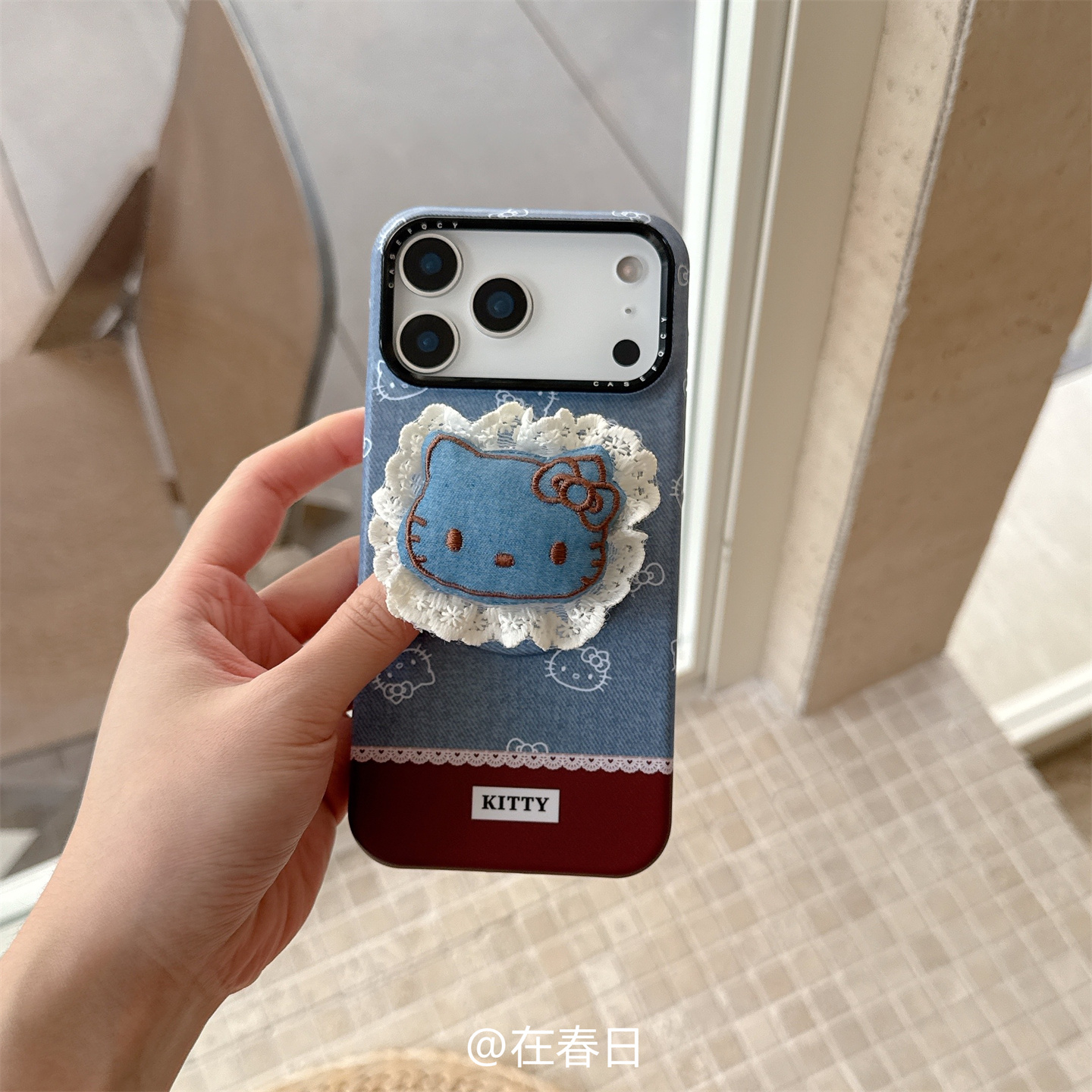 在春日个性甜酷牛仔蕾丝kt猫咪磁吸韩系17适用iPhone17promax硬壳半包16promax保护壳苹果15pro/14女16pro