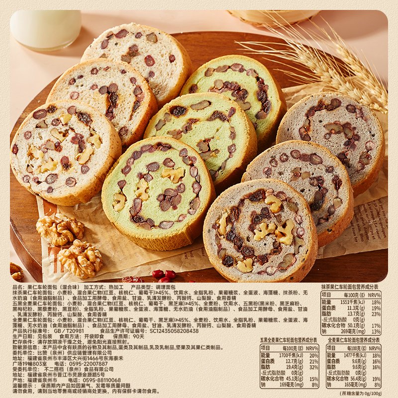 全麦坚果仁车轮面包整箱早餐欧包饼代餐饱腹大列巴吐司零食抹茶