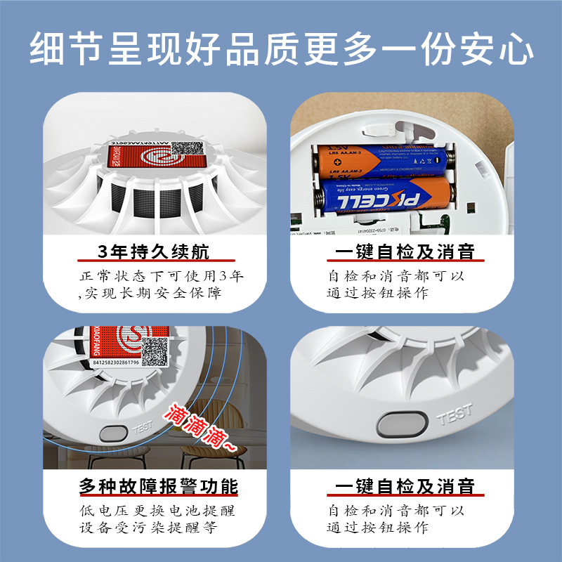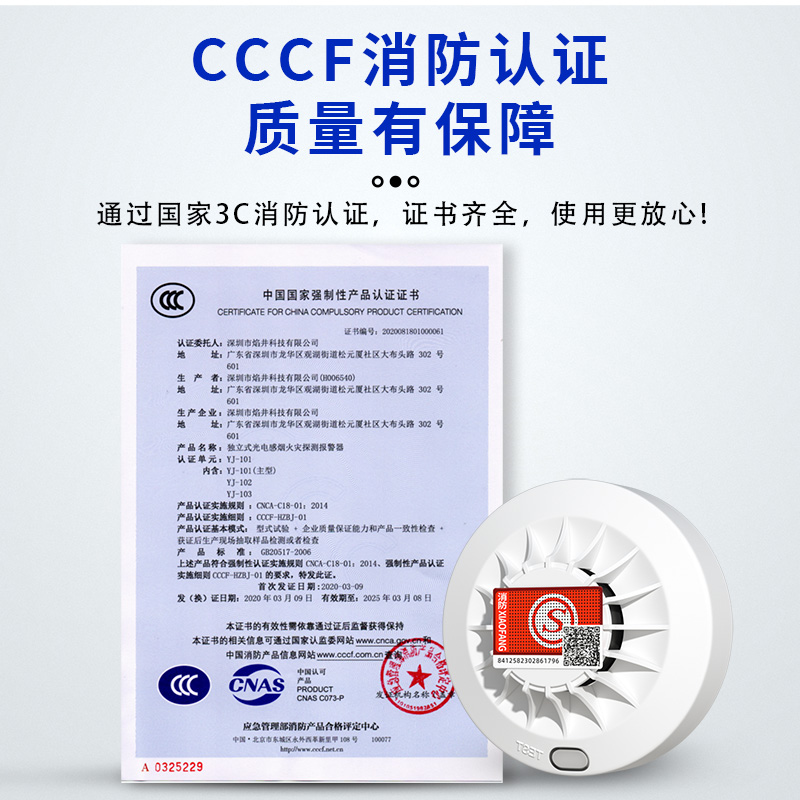 烟感应报警器雾消防专用火灾探测器3c认证商用警报器家用烟独立式