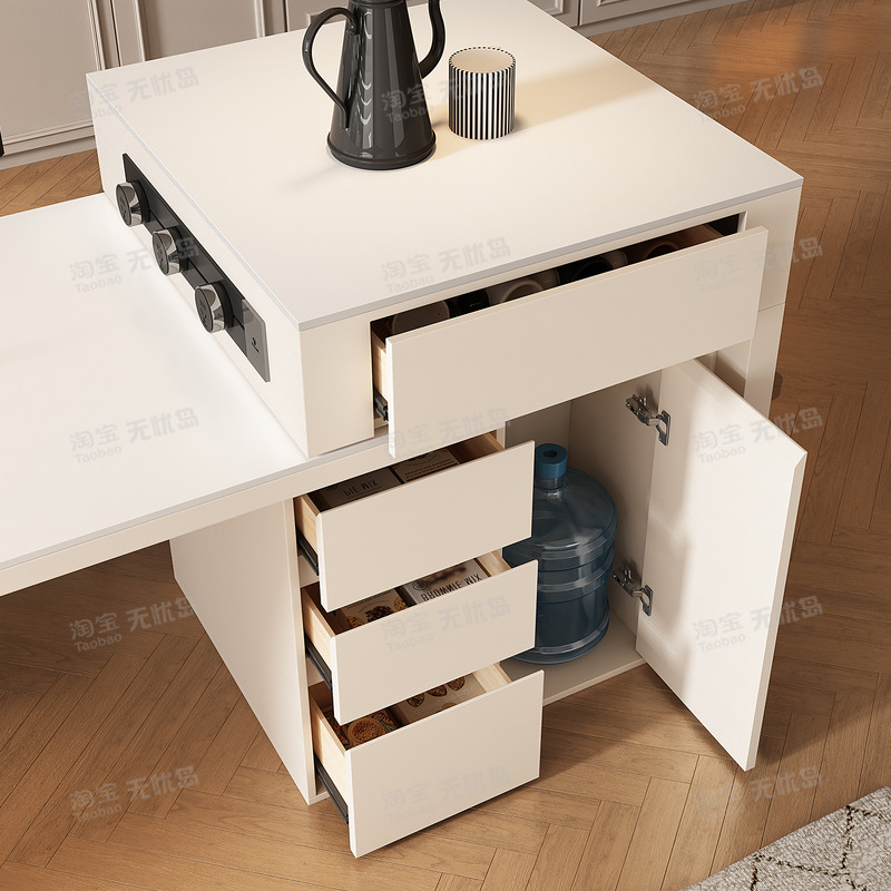 意式极简法式奶油风导台可伸缩岛台餐桌一体式家用倒台岩板餐桌