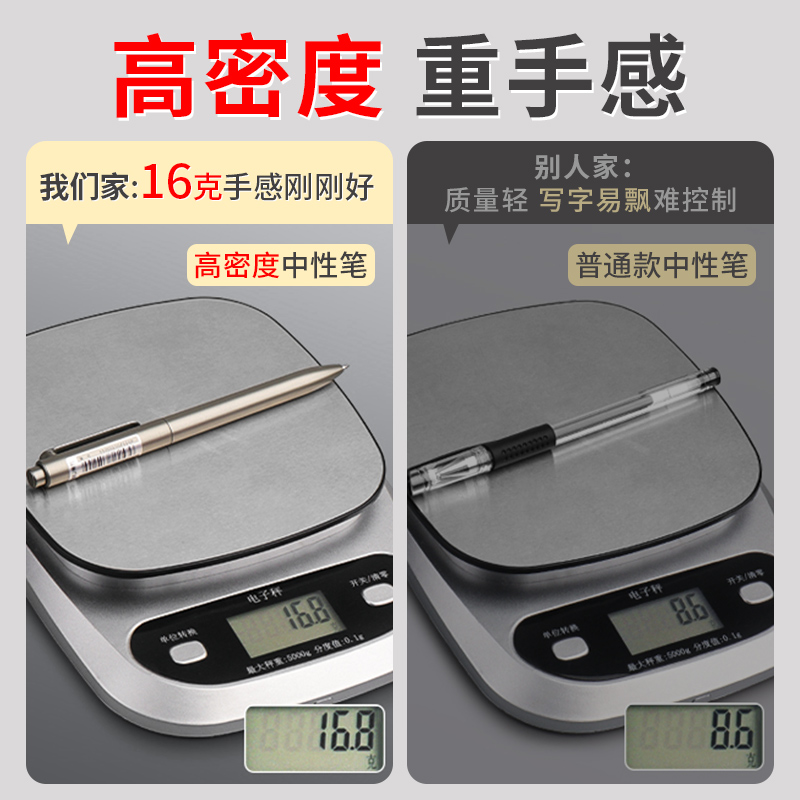 得力按动中性笔黑色水笔0.5金属质感签字笔按键笔创意简约清新学生碳素黑色笔芯广告笔定制办公文具彩印logo