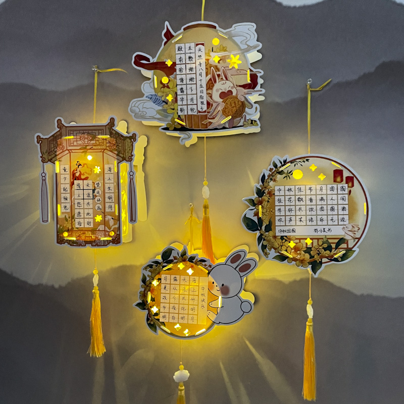 古典中国风中秋节快乐立体灯笼硬笔书法作品纸展示挂卡幼儿园小学生DIY自制材料包手提发光花灯卡纸手工折纸
