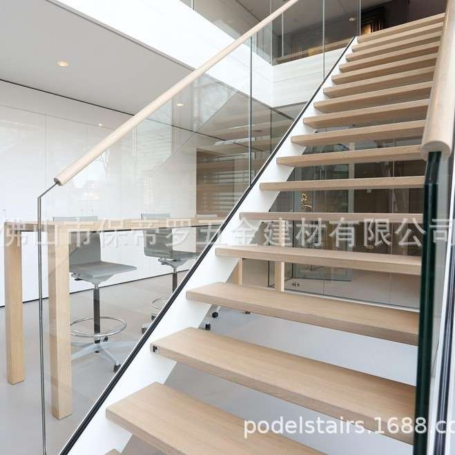 钢木楼梯栏杆不锈钢 玻璃护栏家用钢结构楼梯玻璃栏杆扶手