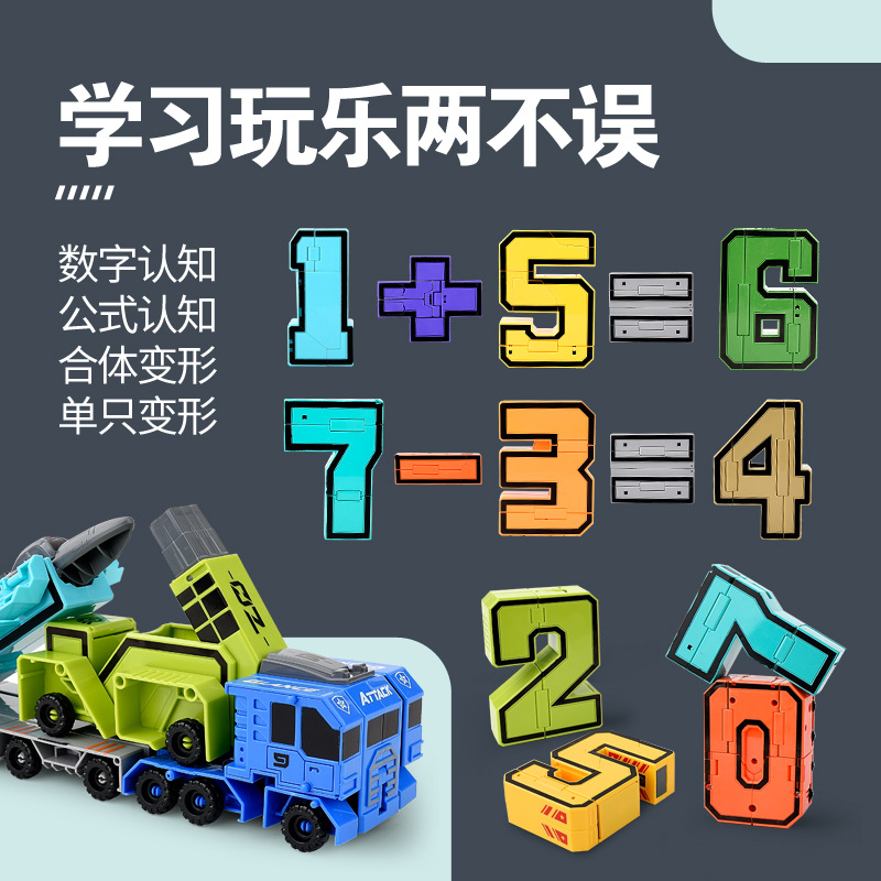 儿童益智数字变形玩具男孩3到6岁5拼装合体机器人7积木13生日礼物