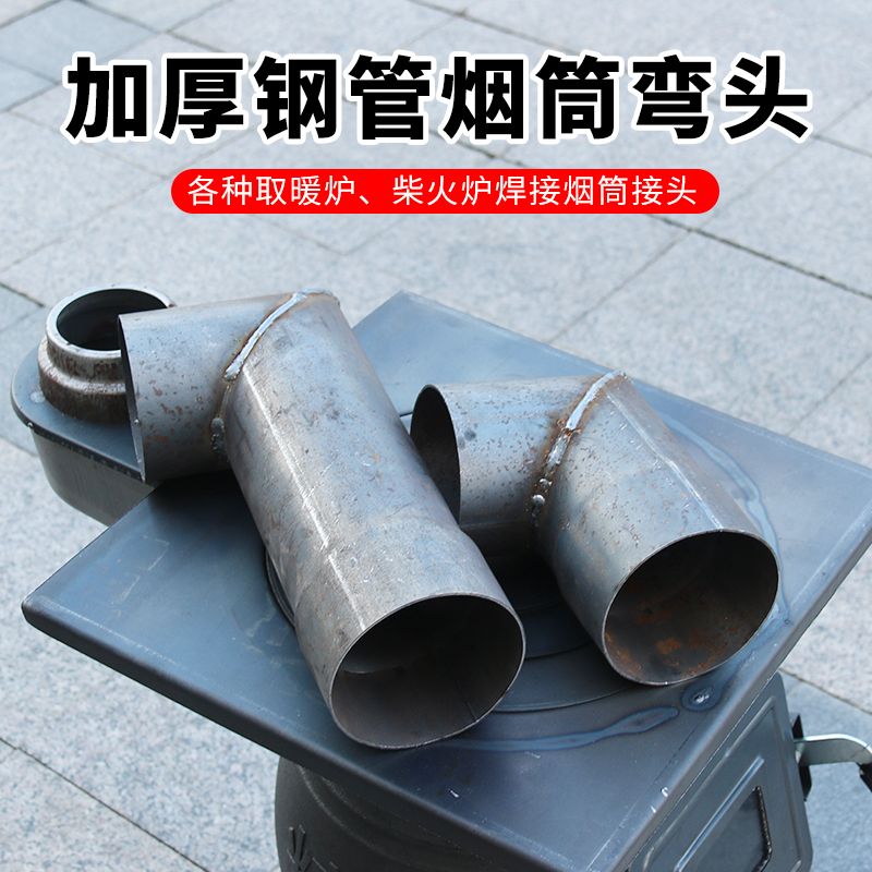 加厚钢管烟管柴火灶回风炉烟囱管弯头烟筒管烤火炉取暖炉排烟管件